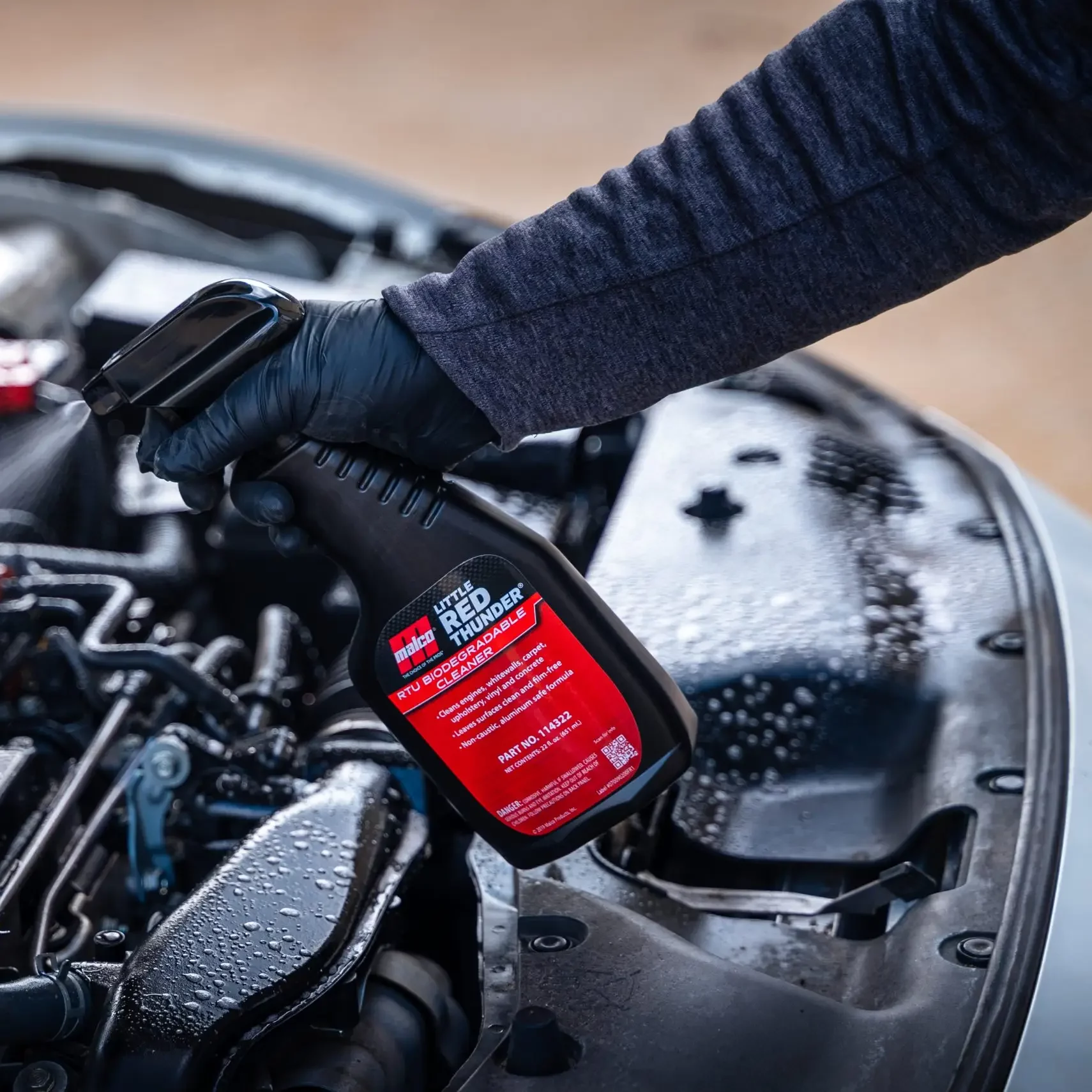 - Cleaning of metal components, plastic covers, engine block surfaces