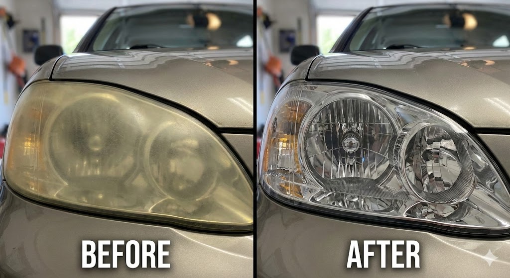A UV-resistant sealant or ceramic coating is applied to protect against future fading and oxidation. We finish with a final inspection to ensure flawless clarity and even light projection.